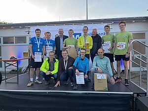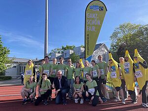 Am Volksbank Firmenlauf nahm die Steuerungsgruppe Fairtrade mit vier Teams teil. Drei Teams traten mit den Fairtrade-T-Shirts und ein Team im Fairtrade-Bananenkostüm an. Das Männerquartett war hier überaus erfolgreich und belegte den 1. Platz. Herzliche Glückwünsche ans Team „fairlaufen“ mit Daniel Jungblut, Timo Müller, Samuel Schmid und David Schmittinger.